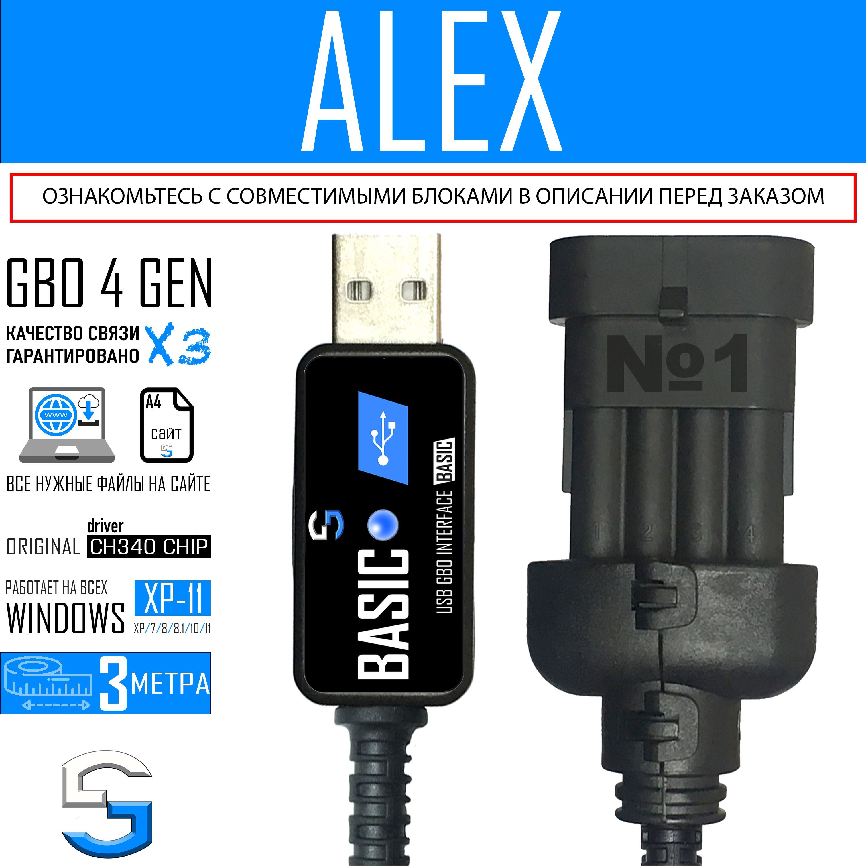 Диагностический кабель ГБО BASIC U2C PLUS предназначен для настройки газового оборудования авто производителя ALEX моделей блоков: