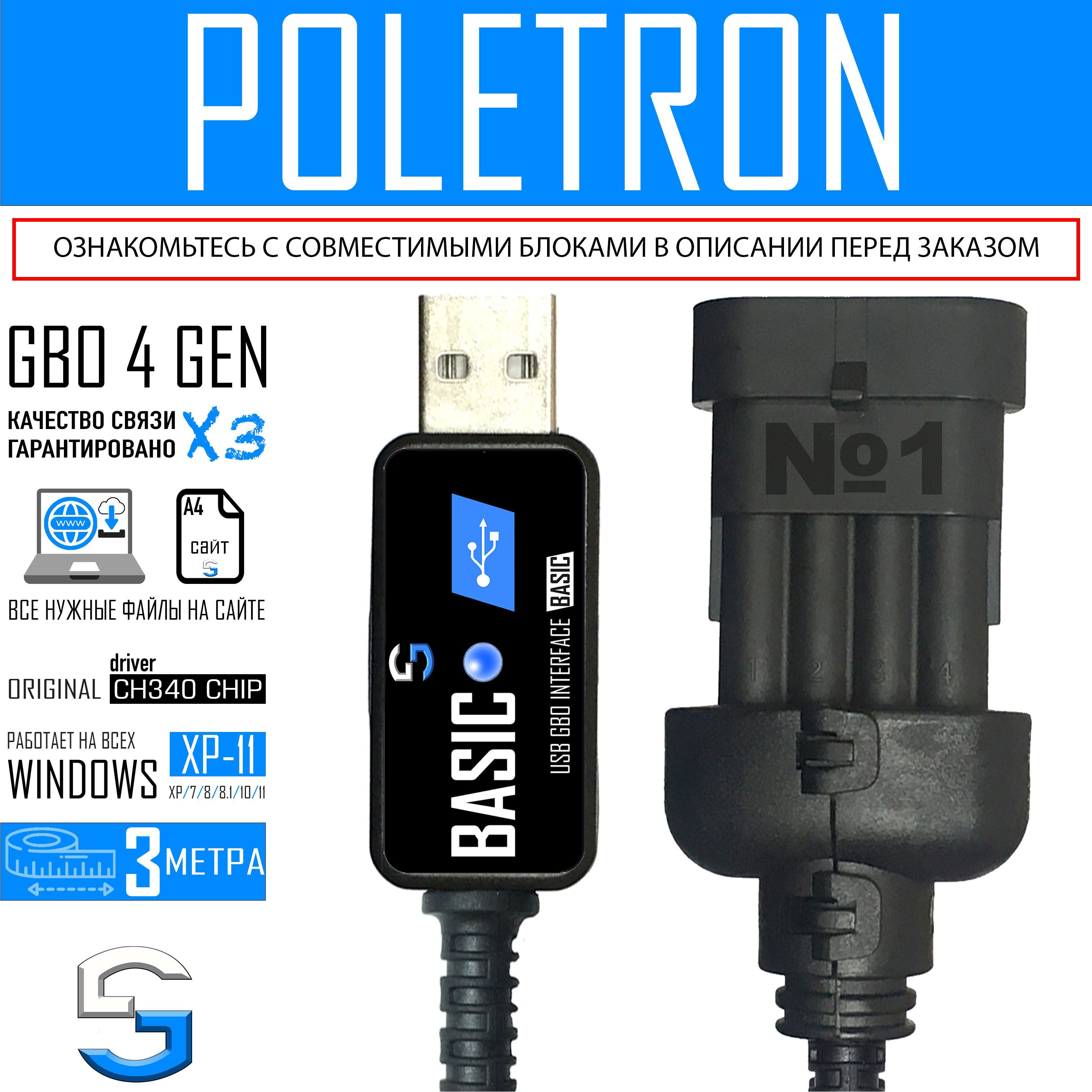 Диагностический кабель ГБО BASIC U2C PLUS предназначен для настройки газового оборудования авто производства POLETRON всех моделей: