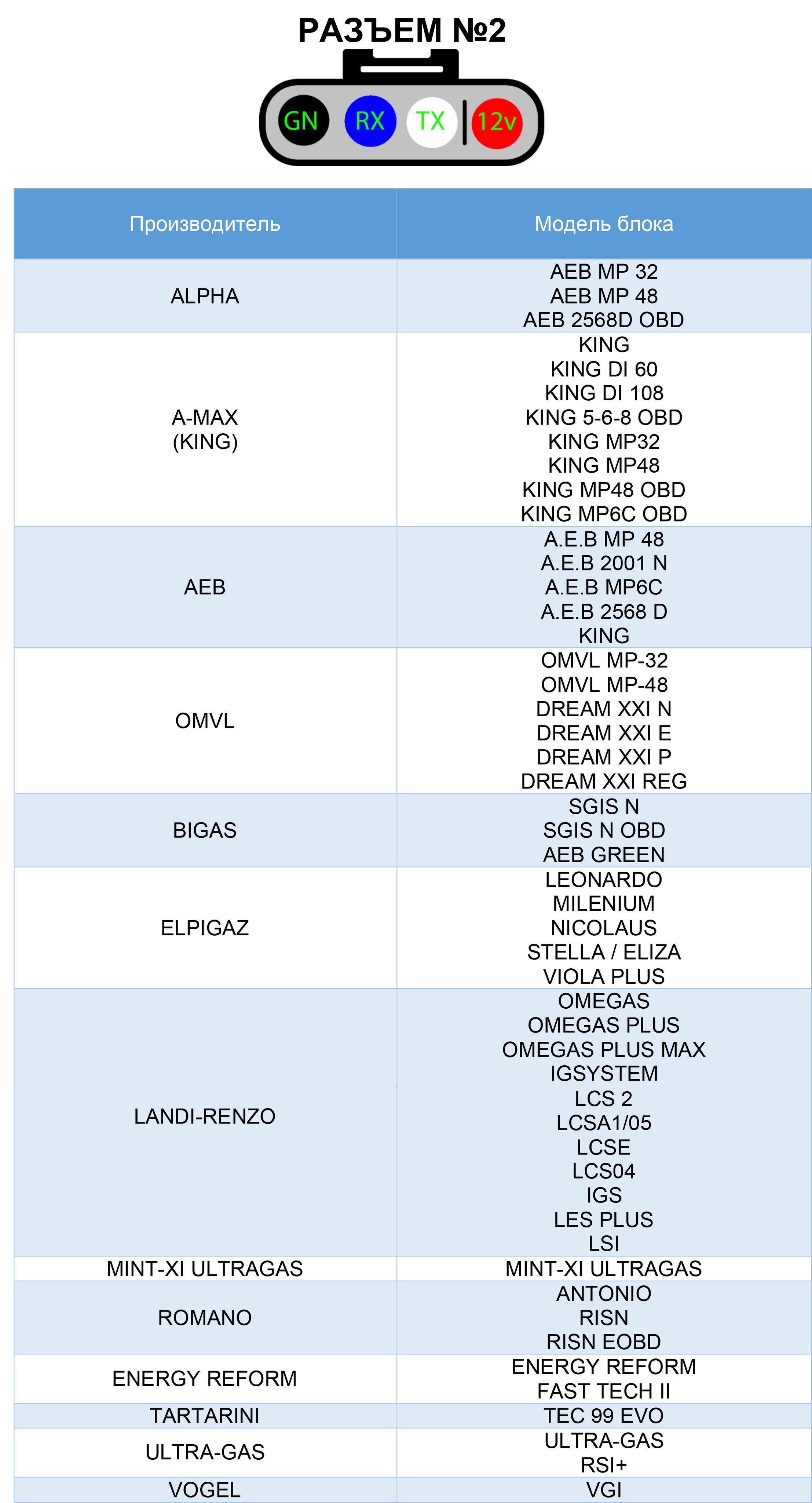 №2 - для систем ГБО AEB / OMVL / LANDI-RENZO и другие.
